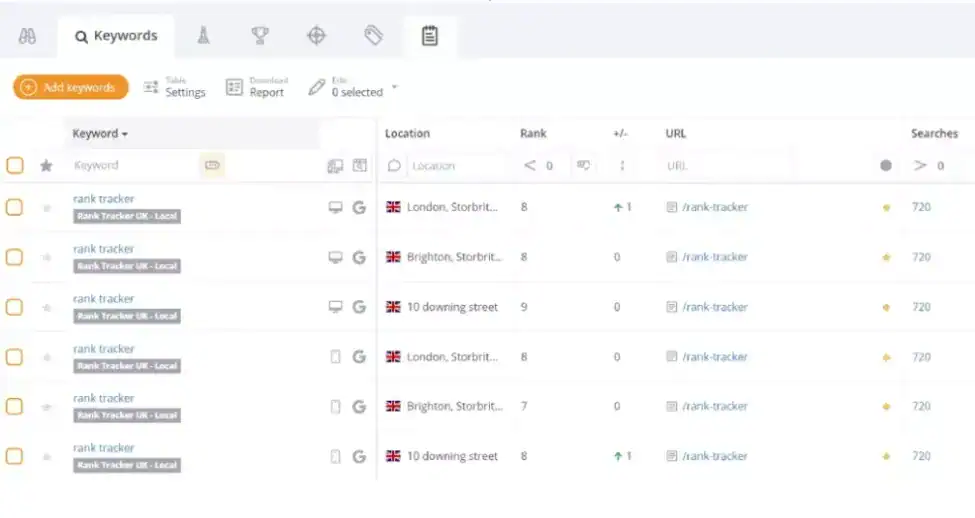 Example: Monitor rankings for searchatlas.com in Las Vegas, Nevada