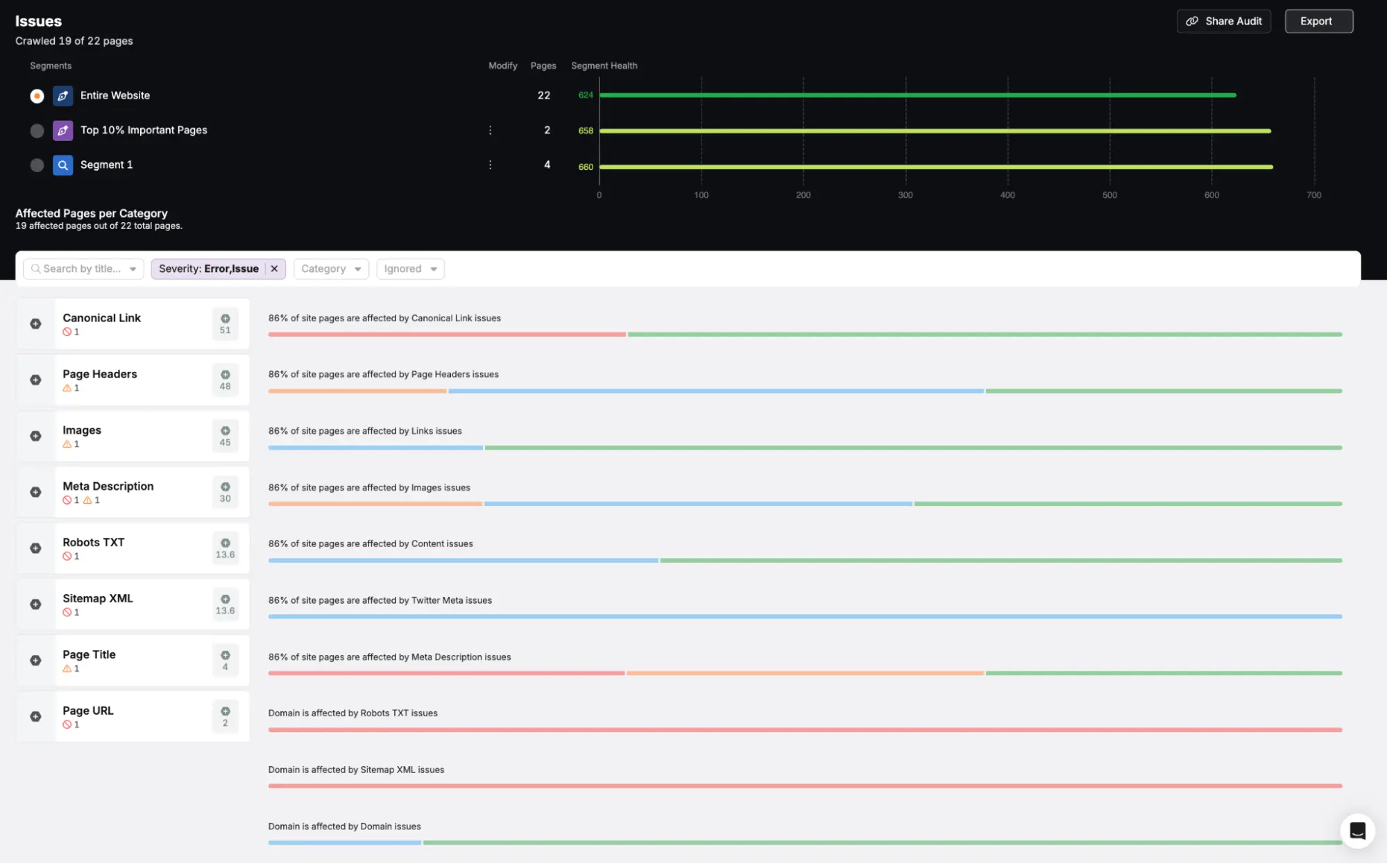 You see exactly which issues stop your site from ranking, risk compliance penalties, or cause Google to ignore your pages. The Search Atlas Site Auditor makes it easy to prioritize and fix technical problems that block organic growth because it gives you a list of issues and direct steps on how to fix them.