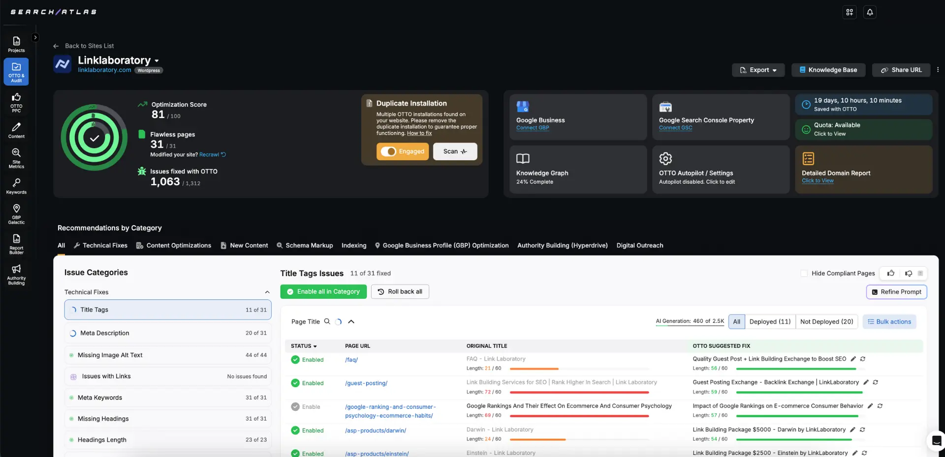 Search Atlas gives startups complete oversight of site speed, crawlability, and technical health in one platform. Startups stay competitive without full development teams because the Search Atlas Site Auditor detects and prioritizes the fixes that matter most.