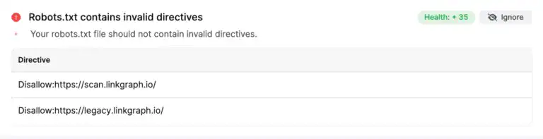 If the site auditor identifies invalid directives in your robots.txt, it will show you a list of the specific directives that contain the errors.