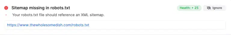 If your XML sitemap is not referenced in your robots file, it will be flagged with the following message in the Site Auditor.