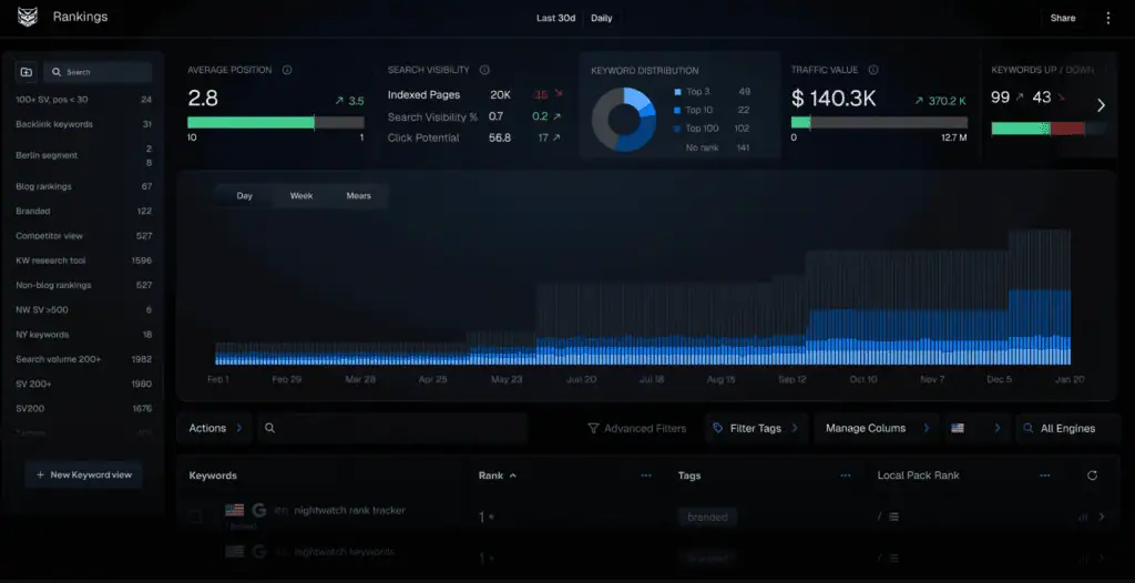 9. Nightwatch: Best Wincher Alternative for Mobile Keyword Tracking