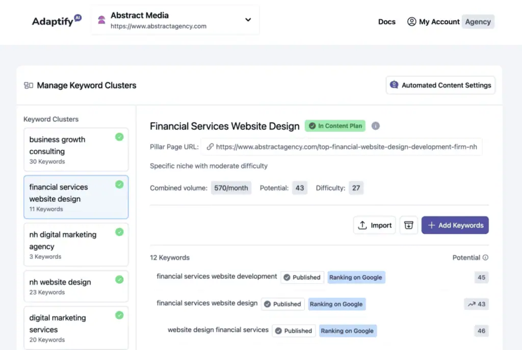 | 12 | Adaptify | Lightweight SEO automation | $199 to $899/month |