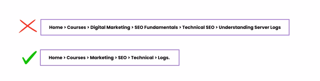 - Match Site Hierarchy. Breadcrumb paths must match the site’s structure. Each level needs to reflect a real content relationship. Avoid misplacing unrelated categories in the trail.