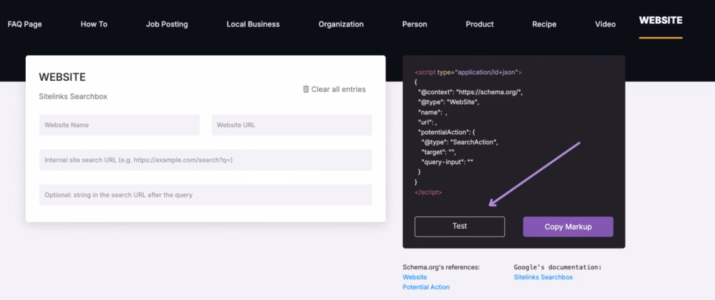 Add structured data using schema markup generator tools. These tools generate valid code, highlight missing fields, and reduce the chance of syntax errors. After publishing, run the test to confirm your structured data is valid and fully supported.